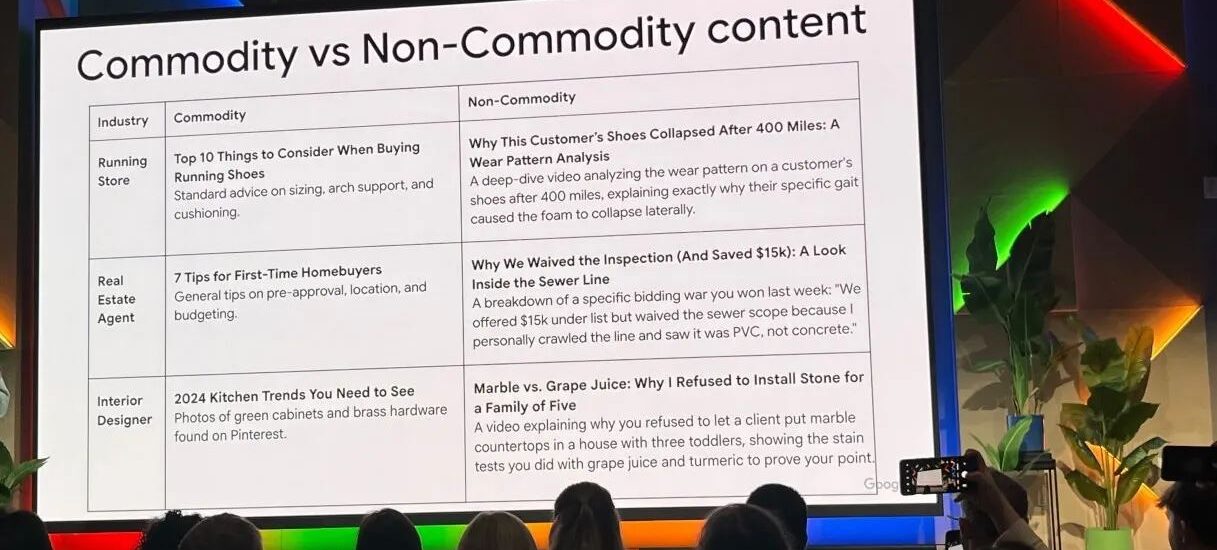At a recent event, Google’s Search Liaison Danny Sullivan did something Google almost never does: he said the quiet part out loud. He put up a slide. Two columns. Commodity content on the left. Non-commodity content on the right. And without much ceremony, he explained